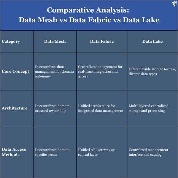 Comparative Analysis: Data Mesh vs Data Fabric vs Data Lake